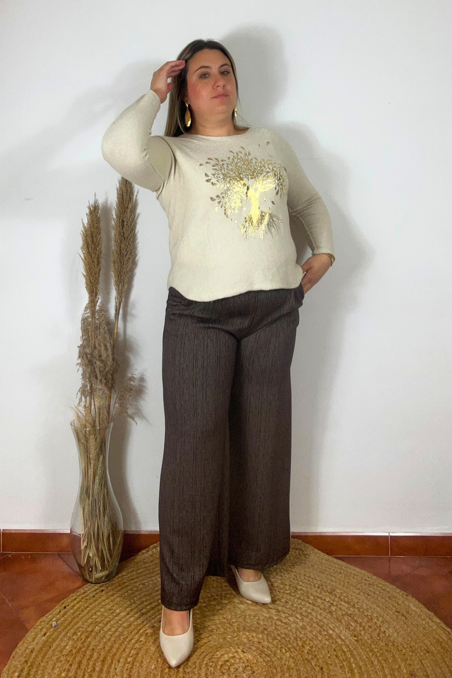 De viscosa suave en tono blanco roto, con un delicado estampado dorado de cuadros, corazones y flores. Su fruncido delantero crea un efecto precioso que lo hace único y especial.